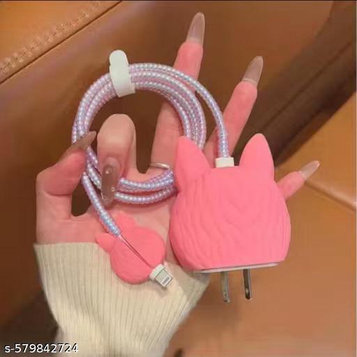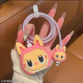 Transform everyday charging into playful fun with this Labubu-inspired pink monster protector set—silicone adapter cover with fuzzy ears, mini bites, and pearl-braided Lightning cable for iPhone chargers. Delivers full protection with viral kawaii appeal.